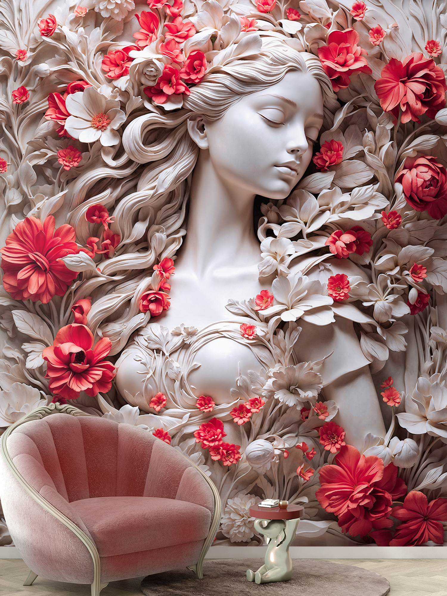Преобразите свое пространство с помощью наших виниловых фотообоев горячего тиснения на флизелиновой основе. Эти моющиеся обои сочетают в себе высокую детализацию, модный дизайн 2025 года и практичность, создавая уютную и стильную атмосферу в любом помещении. Современные и красивые, фотообои идеально подойдут для зала, гостиной, спальни, прихожей, коридора и даже кухни. Вдохновляйтесь дизайном с изображением цветов, листьев, стеблей, бутонов и изящных завитков волос, которые подчеркивают женскую грацию и юность. Особое внимание привлекает барельеф скульптурная композиция с эффектом 3D, которая создает иллюзию объема и глубины. Цветовая гамма фотообоев включает светлые оттенки: персиковый, бело-серые, бежевые, розовые, красные, серые и темно-серые тона. Благодаря технологии горячего тиснения, цвета получаются насыщенными и реалистичными, а блики и текстуры мраморного барельефа, добавляют изысканности. Они станут акцентом в комнате, подчеркивая ваш вкус и создавая гармоничное пространство, наслаждаться уютом и стилем каждый день, а маленькие узкие вертикальные размеры фотообоев помогут быстро преобразить интерьер и сэкономить семейный бюджет.