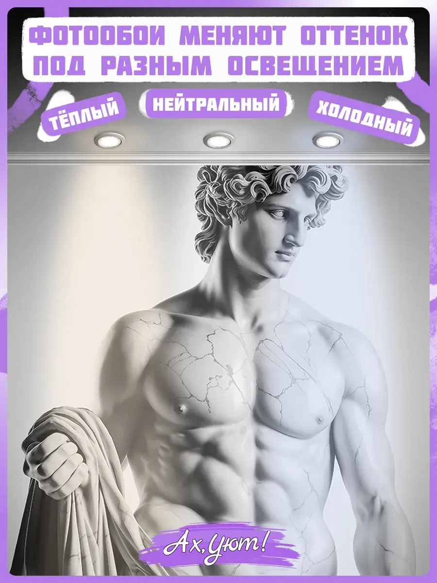 Добавьте изысканности и элегантности в ваш интерьер с помощью роскошных флизелиновых фотообоев с виниловым покрытием горячего тиснения. Эти моющиеся обои на стену станут универсальным решением для кухни, спальни, зала, гостиной, прихожей или коридора, сочетая в себе красоту и практичность. Дизайн выполнен в светлых, серых и темно-серых тонах с прожилками мрамора, что делает его идеальным для интерьеров в стиле античный винтаж или классика. Объемное изображение статуи греческого атлета, имитирующее барельеф ручной работы, создает атмосферу роскоши и греческой утонченности. 3D-эффект добавляет глубину и реалистичность, делая интерьер современным и стильным. Фотообои устойчивы к влаге и легко очищаются, что делает их практичным решением для кухни или прихожей. Флизелиновая основа обеспечивает простоту поклейки и долговечность, сохраняя безупречный вид на долгие годы, создавая яркое и запоминающееся первое впечатление, добавляя интерьеру античный шарм. Подарите своему дому атмосферу роскоши и изысканности, добавив в интерьер стильный и оригинальный элемент декора, который будет модным не только в 2025 году, а маленькие размеры фотообоев помогут быстро преобразить интерьер и сэкономить семейный бюджет.
