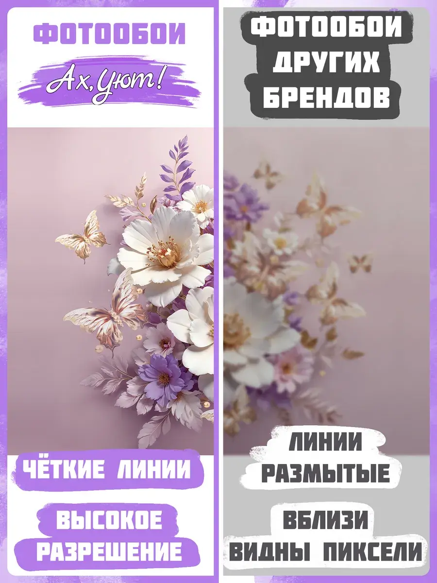 Добавьте в интерьер нотки роскоши и изысканности с виниловыми фотообоями, выполненными с потрясающим 3D-эффектом. Эти моющиеся обои горячего тиснения на флизелиновой основе станут стильным украшением для любого помещения, будь то зал, гостиная, спальня или прихожая. Модные и актуальные в 2025 году, они подчеркнут ваш вкус и добавят пространству атмосферу уюта и гармонии. Центром композиции являются крупные белые, фиолетово-лавандовые и розовые цветы, окружённые золотистыми тычинками и бабочками. Цветы расположены на фоне светло-розового цвета, что создаёт эффект глубины и реалистичности. Цветовая палитра включает белые, фиолетовые, розовые и золотистые оттенки, которые гармонично сочетаются, создавая уютную и спокойную атмосферу. Эти фотообои идеально подойдут для тех, кто ценит природную красоту и современный дизайн. Они добавят пространству визуального объёма и стиля, превратив стену в настоящий акцентный элемент. Благодаря технологии горячего тиснения и флизелиновой основе, фотообои устойчивы к повреждениям и легко наносятся на стену. Моющаяся поверхность позволяет поддерживать их в идеальной чистоте, сохраняя яркость и свежесть красок на долгие годы. Выбирайте эти красивые и современные фотообои, чтобы добавить в интерьер нотки природной гармонии, уюта и стиля, а маленькие размеры фотообоев помогут быстро преобразить интерьер и сэкономить семейный бюджет!