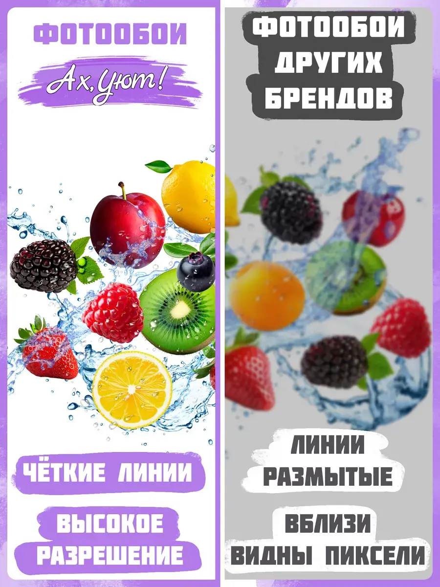 Добавьте свежести и яркости в интерьер вашей кухни с современными виниловыми фотообоями, выполненными с потрясающим 3D-эффектом. Эти моющиеся обои горячего тиснения на флизелиновой основе станут стильным украшением, подчеркивая геометрию помещения и создавая атмосферу летнего сада. Модные и актуальные в 2025 году, они принесут в ваш дом ощущение свежести и природной гармонии. Центром композиции являются сочные фрукты и ягоды, окруженные брызгами воды, что создает эффект свежести и натуральности. Вас порадует изумительное сочетание красок и форм: малина, клубника, ежевика, киви, персик, лимон и слива выглядят настолько реалистично, что хочется протянуть руку и попробовать их. Брызги воды добавляют динамики и живости, делая изображение еще более привлекательным. Цветовая гамма включает яркие оттенки: красный, фиолетовый, голубой, желтый, зеленый и темный фиолетово-черный, которые гармонично сочетаются с прозрачными брызгами воды, создавая ощущение свежести и легкости. Эти фотообои идеально подойдут для кухни, где каждый элемент интерьера должен радовать глаз и создавать уютную атмосферу. Они добавят пространству ярких красок и настроения, превратив стену в настоящий акцентный элемент. Благодаря технологии горячего тиснения и флизелиновой основе, фотообои устойчивы к повреждениям и легко наносятся на стену. Моющаяся поверхность позволяет поддерживать их в идеальной чистоте, сохраняя яркость и свежесть красок на долгие годы.