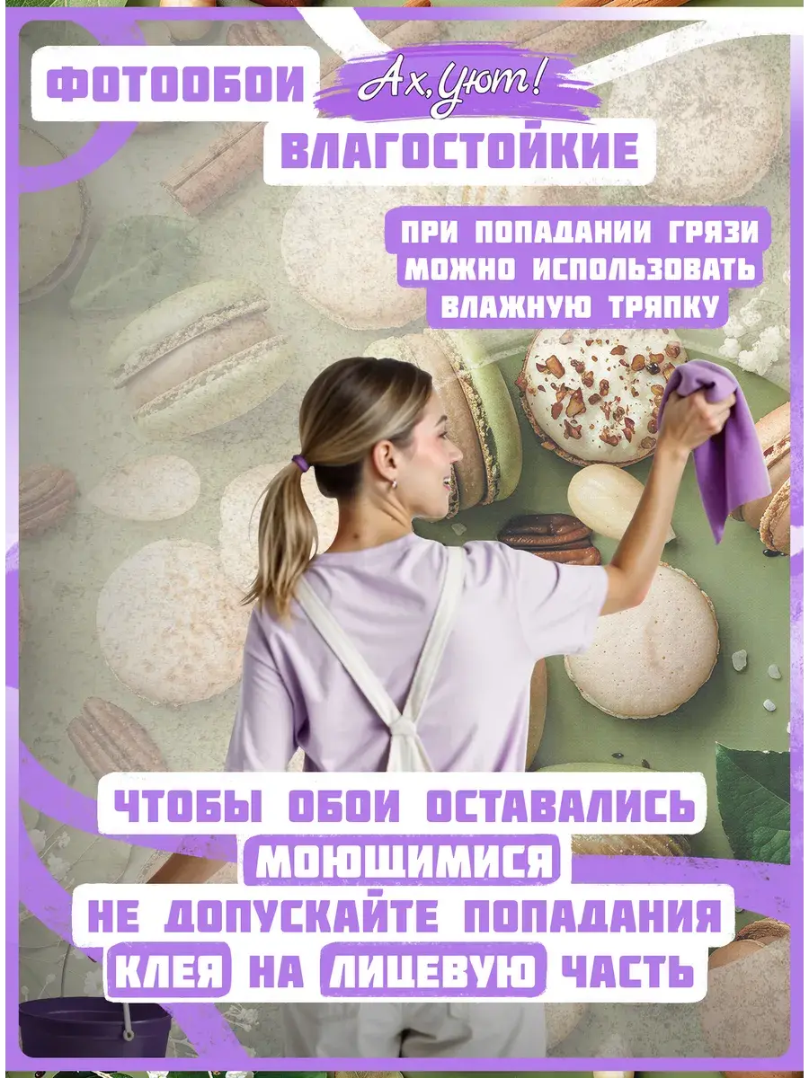 Добавьте уюта и аппетитного настроения в интерьер вашей кухни с современными виниловыми фотообоями, выполненными с потрясающим 3D-эффектом. Эти моющиеся обои горячего тиснения на флизелиновой основе станут стильным украшением, подчеркивая геометрию помещения и создавая атмосферу тепла и гостеприимства. Модные и актуальные в 2025 году, они принесут в ваш дом ощущение комфорта и вдохновения. Центром композиции являются аппетитные зеленые и бежевые печенья макарон, ароматные палочки корицы, хрустящие орехи арахиса и свежие веточки белых цветов. На ярко-зеленом фоне эти элементы выглядят особенно привлекательно, создавая эффект натуральности и свежести. Листья и миндаль добавляют изображению текстуры и глубины, делая его еще более реалистичным. Цветовая гамма включает ярко-зеленые, бежевые, коричневые и белые оттенки, которые гармонично сочетаются, создавая теплый и уютный ансамбль. Эти фотообои идеально подойдут для кухни, где каждый элемент интерьера должен радовать глаз и создавать уютную атмосферу. Они добавят пространству ярких красок и настроения, превратив стену в настоящий акцентный элемент. Благодаря технологии горячего тиснения и флизелиновой основе, фотообои устойчивы к повреждениям и легко наносятся на стену. Моющаяся поверхность позволяет поддерживать их в идеальной чистоте, сохраняя яркость и свежесть красок на долгие годы. Выбирайте эти красивые и современные фотообои, чтобы добавить в интерьер нотки уюта, аппетитного настроения и вдохновения, а маленькие узкие вертикальные размеры фотообоев помогут быстро преобразить интерьер и сэкономить семейный бюджет!