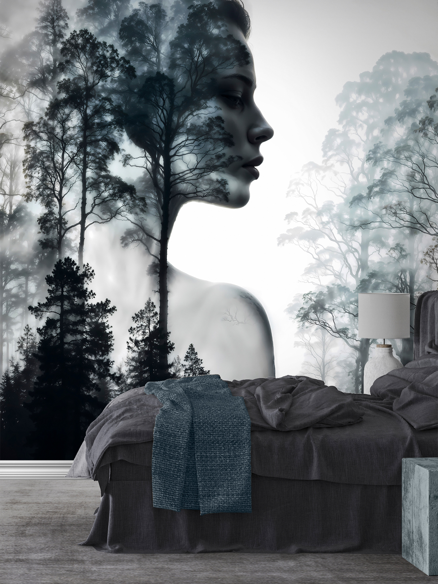 Если вы хотите преобразить интерьер и сделать в нём яркий акцент, дизайнерские фотообои «Девушка и лес» станут отличным решением. На изображении представлена художественная композиция, в которой силуэт женского профиля плавно переходит в лесной пейзаж. Лицо женщины изображено в профиль, и оно как бы сливается с деревьями, создавая эффект двойной экспозиции. Деревья высокие и стройные, с густыми кронами, и они занимают большую часть изображения. Фон светлый, что подчеркивает контраст между темными силуэтами деревьев и светлым небом. Общая атмосфера изображения загадочная и мечтательная. Это качественный и недорогой способ преобразить интерьер. Такие оригинальные обои сделают уютным и гармоничным любое помещение. Фотообои подойдут как для гостиной (зала) или спальни, так и для прихожей, коридора и кухни. В нашем магазине представлен большой выбор изображений на любую тематику. Характеристики: Фотообои изготовлены из высокопрочного материала: винил горячего тиснения на флизелиновой основе и представляют собой 3 метровые полосы, которые методом поклейки стык в стык превращаются в красивое фотопанно. Рисунок на полотне имеет высокую детализацию даже при близком расотрении, все изображения созданы специально для широкоформатной печати. Цвета на фотообоях получаются яркими и насыщенными. Транспортировка осуществляется в прочном фирменном тубусе. Преимущества продукции от производителя Ах, Уют!: Идеальный невидимый стык; Флизелиновая основа - легко клеится на клей флизелиновых обоев; Не выцветают на солнце, подходят для солнечных помещений; Не рвутся при нанесении клея, не дают усадку после поклейки; Благодаря высокой плотности скрывают небольшие неровности поверхности; Моющиеся, можно мыть и протирать влажной тряпочкой (возможно даже оттереть карандаши и фломастеры на водной основе); Изображения напечатаны специальными интерьерными эко-чернилами, безопасными для здоровья. Большой выбор уникальных дизайнерских изображений.