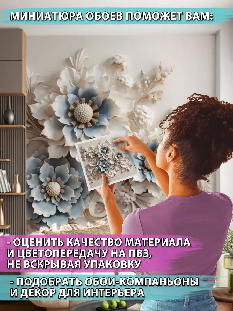 Добавьте изысканности и уюта в ваш интерьер с помощью красивых флизелиновых фотообоев с покрытием винил горячего тиснения. Эти моющиеся дизайнерские обои на стену станут универсальным решением для кухни, спальни, зала или гостиной, прихожей или коридора. Дизайн выполнен в светлых бежевых тонах с акцентами синего, что делает его идеальным для стиля винтаж, прованс или классика. Объемное изображение крупных бежевых и синих цветов и листьев, похожих на вензеля, имитирует барельеф ручной работы, создавая атмосферу роскоши и изысканности. 3D-эффект добавляет глубину и реалистичность, делая интерьер современным и стильным. Фотообои устойчивы к влаге и легко очищаются, что делает их практичным решением для кухни или прихожей. Маленькие узкие вертикальные размеры фотообоев помогут быстро преобразить интерьер и сэкономить семейный бюджет. Флизелиновая основа обеспечивает простоту поклейки и долговечность. Для спальни или гостиной эти обои станут эффектным акцентом, подчеркивающим ваш вкус и любовь к классическому стилю. В прихожей или коридоре они создадут яркое и запоминающееся первое впечатление. Подарите своему дому атмосферу уюта и роскоши, добавив в интерьер стильный и оригинальный элемент декора, который будет модным в 2025 году!