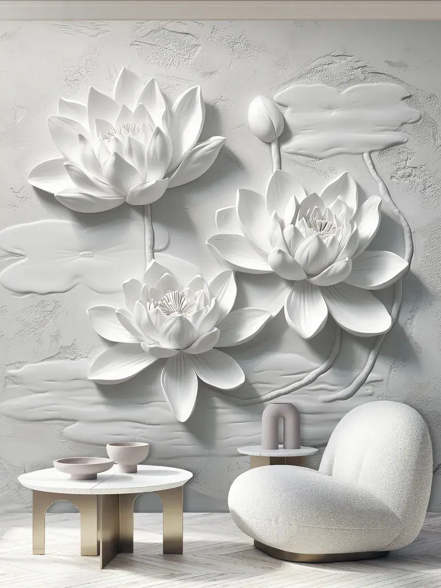 Добавьте элегантности и уюта в ваш интерьер с помощью красивых флизелиновых фотообоев с покрытием винил горячего тиснения. Эти моющиеся обои на стену станут универсальным решением для кухни, спальни, зала или гостиной, прихожей или коридора. Дизайн выполнен в светлых серо-белых тонах, что делает его идеальным для стиля винтаж, прованс или классика. Объемное изображение крупных цветов и листьев лотоса на фоне штукатурки имитирует барельеф ручной работы из гипса, создавая атмосферу роскоши и изысканности. 3D-эффект добавляет глубину и реалистичность, делая интерьер современным и стильным. Фотообои устойчивы к влаге и легко очищаются, что делает их практичным решением для кухни или прихожей. Флизелиновая основа обеспечивает простоту поклейки и долговечность. Для спальни или гостиной эти обои станут эффектным акцентом, подчеркивающим ваш вкус и любовь к классическому стилю. В прихожей или коридоре они создадут яркое и запоминающееся первое впечатление. Подарите своему дому атмосферу уюта и роскоши, добавив в интерьер стильный и оригинальный элемент декора, который будет модным в 2025 году!